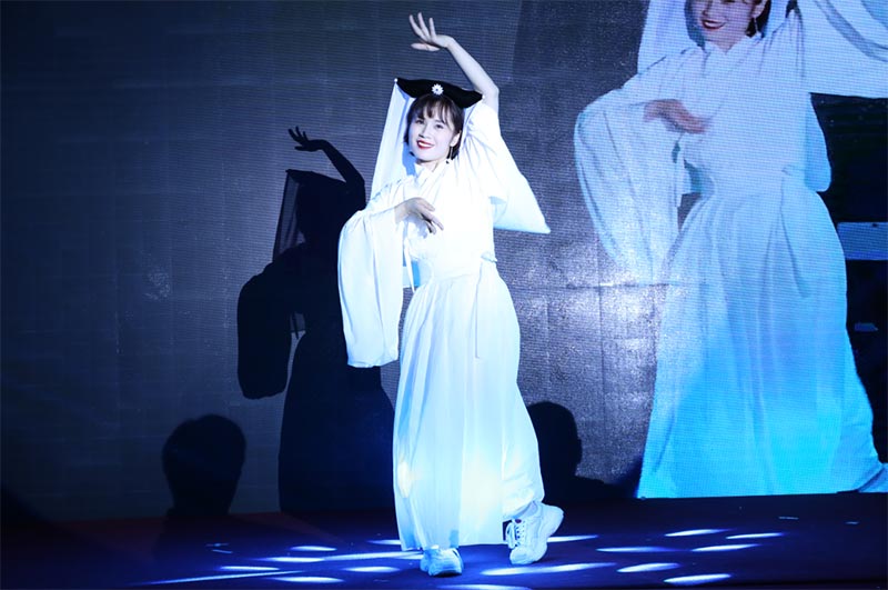 第九個(gè)節目是公司店慶舞蹈總指揮帶來(lái)的獨舞《白蛇傳說(shuō)》,優(yōu)柔舞姿,翩翩入戲