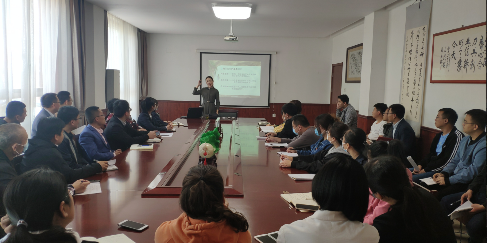 5月5號,為提高公司整體形象,提高員工業(yè)務(wù)水平,公司請禮儀老師來(lái)公司培訓,經(jīng)過(guò)老師的講解,公司開(kāi)始實(shí)施全體員工著(zhù)裝得體的政策,周一至周五全部著(zhù)西裝、皮鞋。