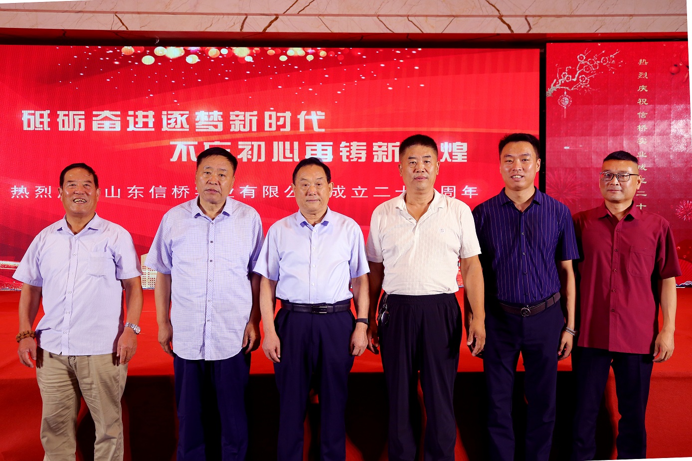 歲月如歌,風(fēng)霜如畫(huà),二十七年彈指一揮間,山東信橋實(shí)業(yè)有限公司(以下簡(jiǎn)稱(chēng)山東信橋)迎來(lái)了二十七周年的生日。二十七年來(lái),信橋人在激烈的市場(chǎng)競爭中奮力拼搏、砥礪前行,接受了市場(chǎng)風(fēng)風(fēng)雨雨的洗禮,取得了累累碩果。為了慶祝這一特殊的日子,2021年8月8日,以“拼搏進(jìn)取,開(kāi)創(chuàng )新時(shí)代”為主題的山東信橋二十七周年慶典活動(dòng)在寶盛大酒店舉行。