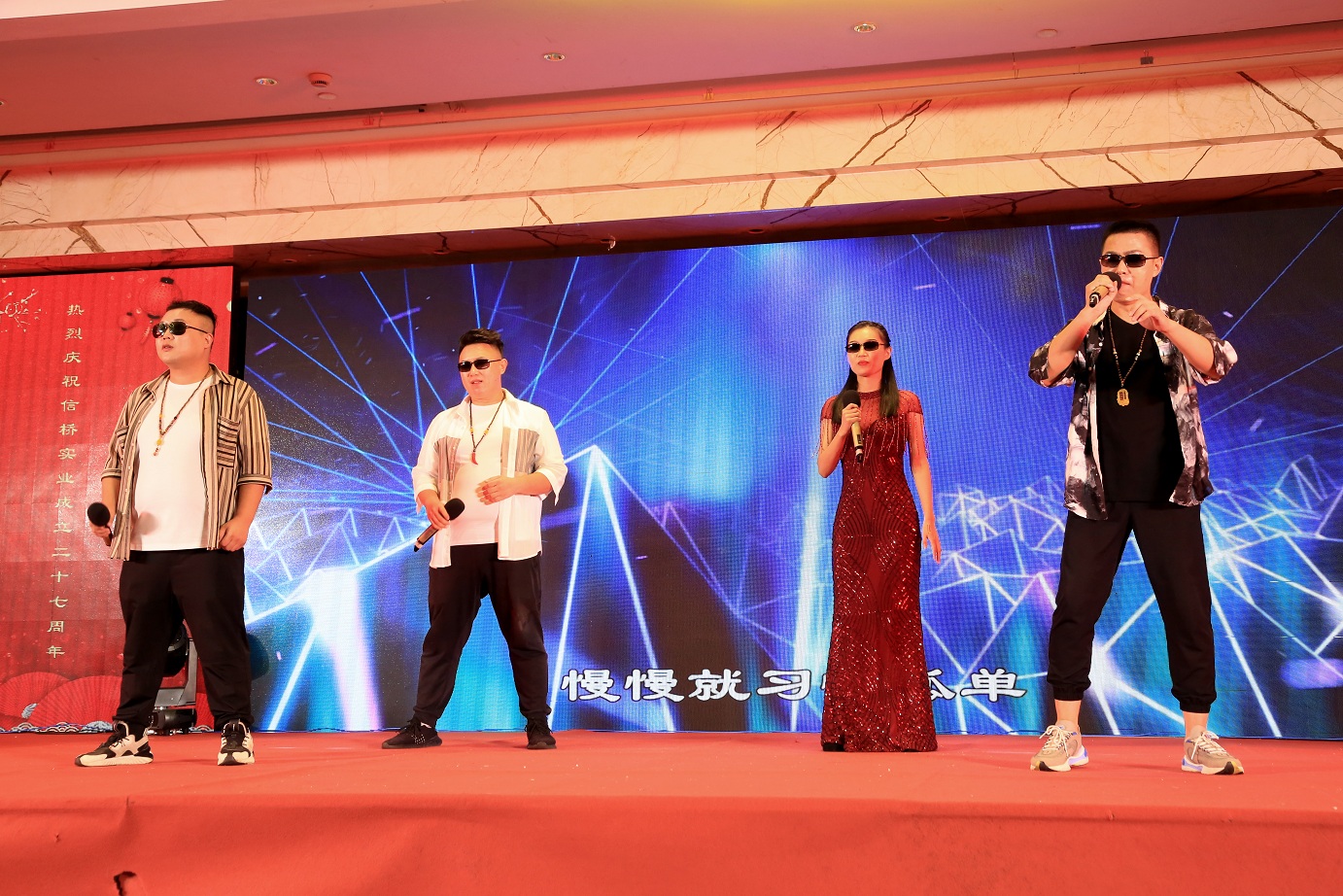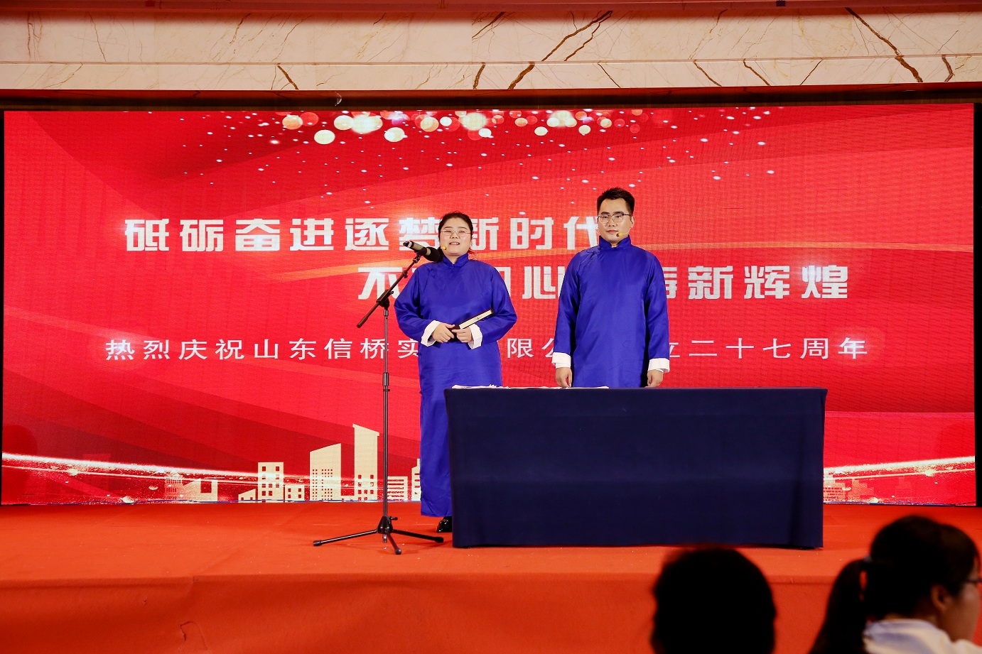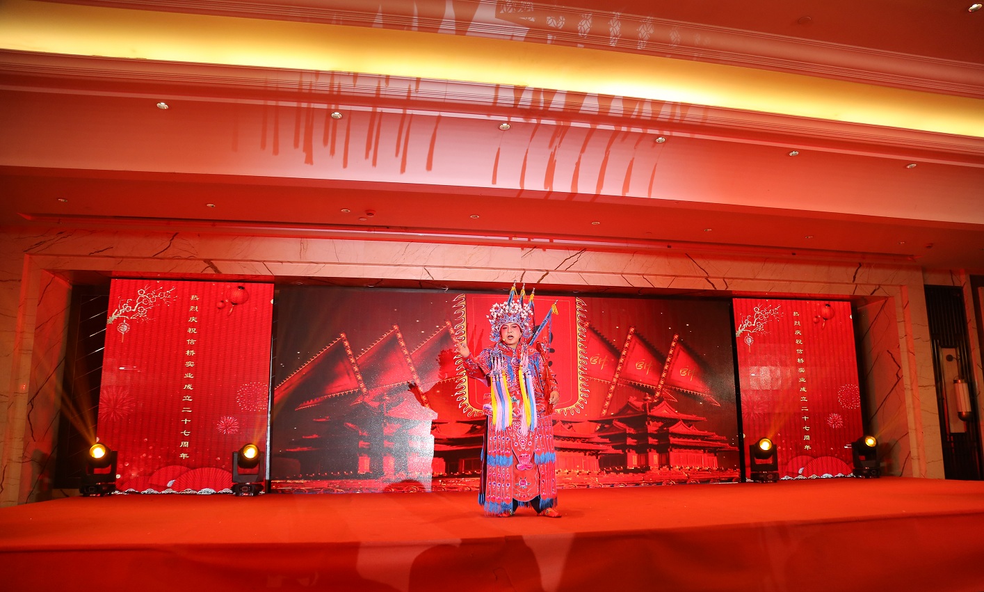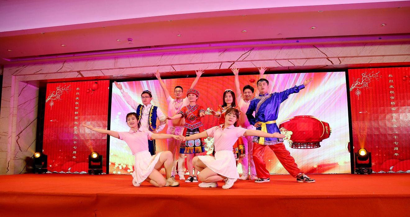 此次慶典晚宴參加人員除了信橋全體員工之外,還有部分老領(lǐng)導和老朋友,大家共同分享了信橋二十七周年的喜悅與精彩。八號上午,慶典開(kāi)始之前,演員們辛勤排練,燈光師、音響師共同配合,所有人為了晚會(huì )都在努力。下午4點(diǎn)58分,晚會(huì )正式開(kāi)始,全體員工與領(lǐng)導集體合影,信橋隊伍不斷在擴大。今年的晚會(huì )添加新的互動(dòng)方式,采用了直播和紅包雨的新形式,是信橋周年慶典的一次新的嘗試。
