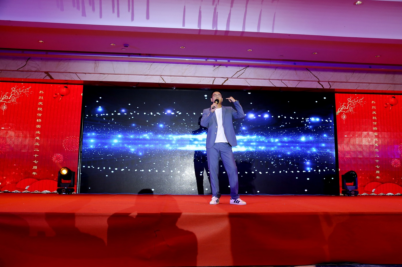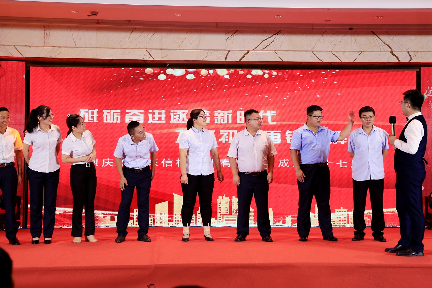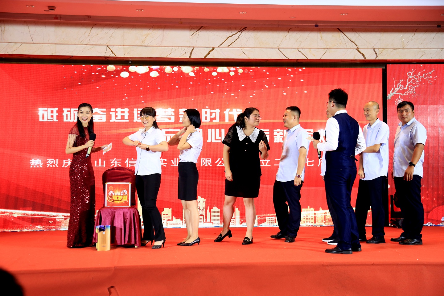 此次慶典晚宴參加人員除了信橋全體員工之外,還有部分老領(lǐng)導和老朋友,大家共同分享了信橋二十七周年的喜悅與精彩。八號上午,慶典開(kāi)始之前,演員們辛勤排練,燈光師、音響師共同配合,所有人為了晚會(huì )都在努力。下午4點(diǎn)58分,晚會(huì )正式開(kāi)始,全體員工與領(lǐng)導集體合影,信橋隊伍不斷在擴大。今年的晚會(huì )添加新的互動(dòng)方式,采用了直播和紅包雨的新形式,是信橋周年慶典的一次新的嘗試。