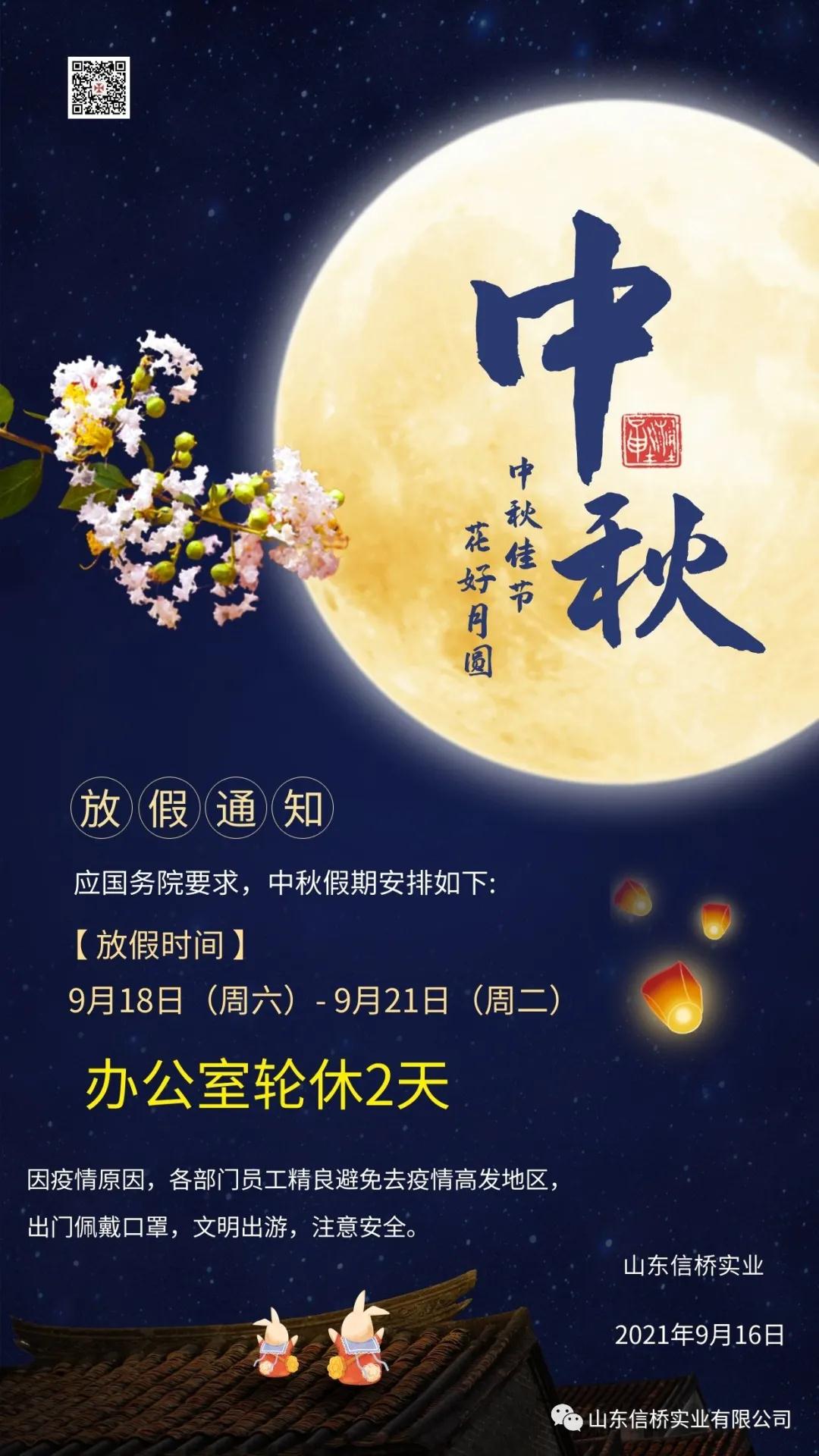 山東信橋實(shí)業(yè)有限公司中秋節放假通知