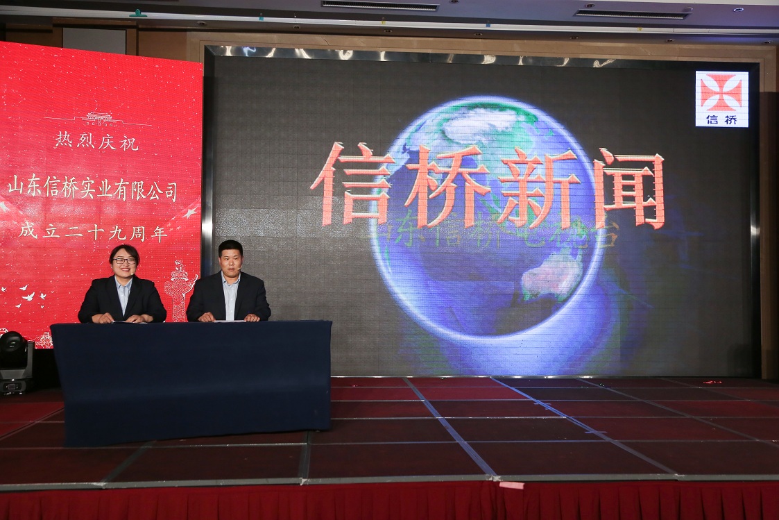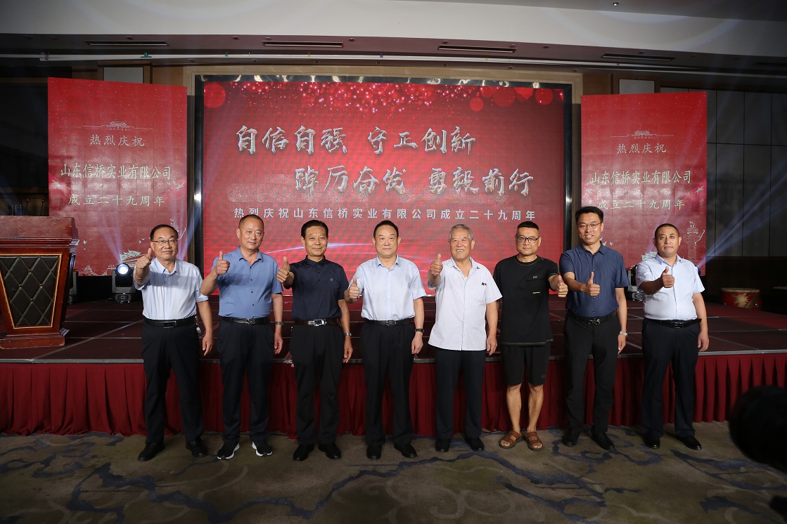 歲月如歌,風(fēng)霜如畫(huà),二十九年彈指一揮間,山東信橋實(shí)業(yè)有限公司(以下簡(jiǎn)稱(chēng)山東信橋)迎來(lái)了二十九周歲的生日。二十九年來(lái),信橋人在激烈的市場(chǎng)競爭中奮力拼搏、砥礪前行,接受了市場(chǎng)風(fēng)風(fēng)雨雨的洗禮,取得了累累碩果。為了慶祝這一特殊的日子,2023年8月8日,以“激流勇進(jìn),安定團結謀發(fā)展 披荊斬棘,開(kāi)拓創(chuàng )新向未來(lái)”為主題的山東信橋二十九周年慶典活動(dòng)在寶盛大酒店舉行。