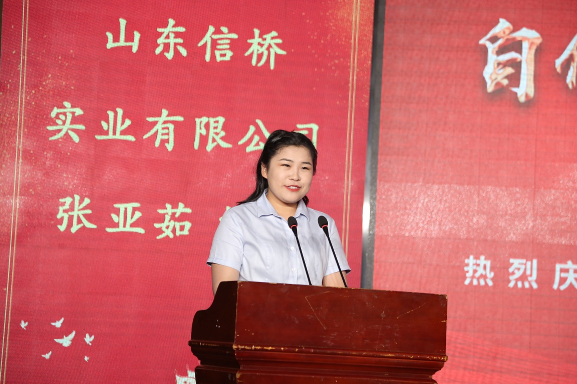 員工代表張亞茹講話(huà),她是青年一代的代表,代表了從校園進(jìn)信橋的一代,感慨了信橋二十幾年的發(fā)展,感謝信橋給予她的財富和能力。