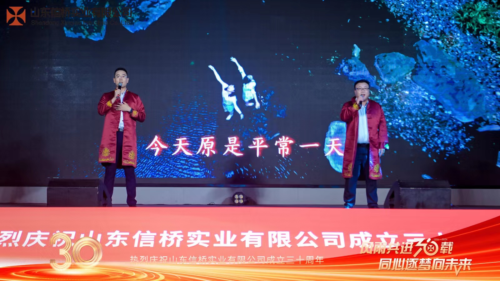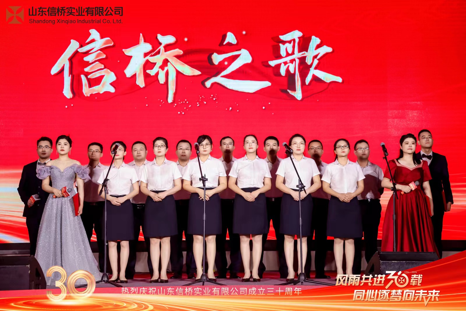四位主持帶來(lái)詩(shī)朗誦《30而立,行穩致遠》,隨后,全體信橋員工帶來(lái)大合唱《信橋之歌》。