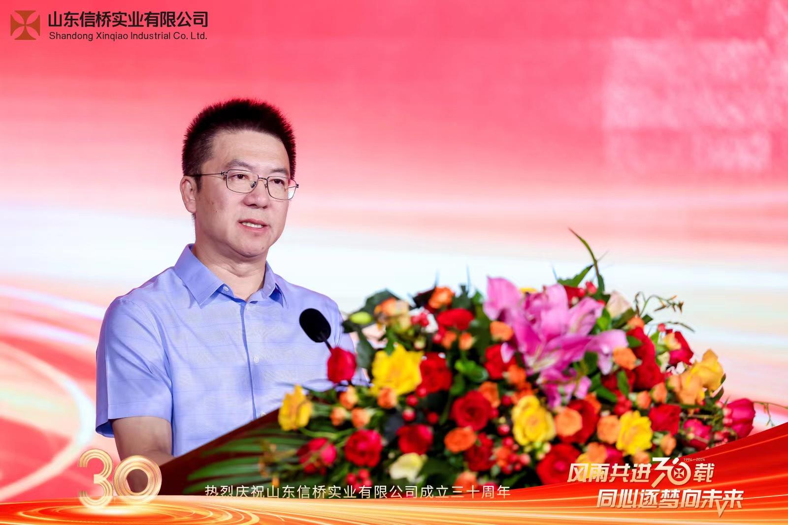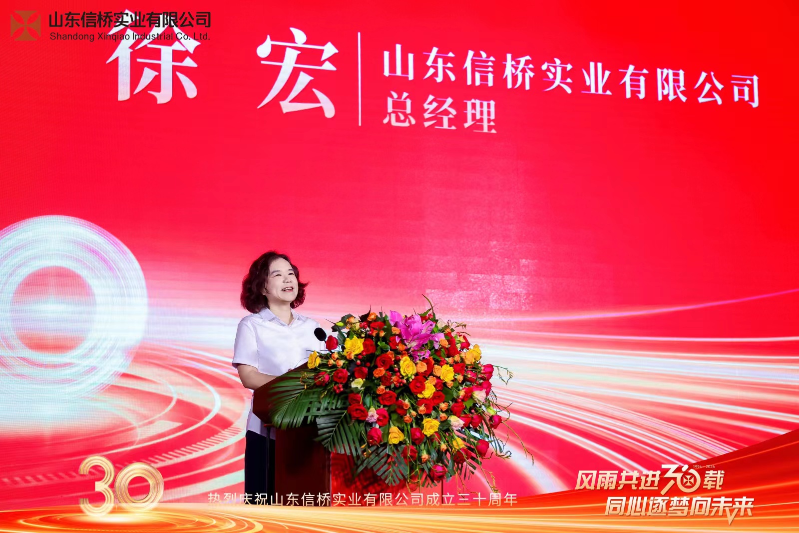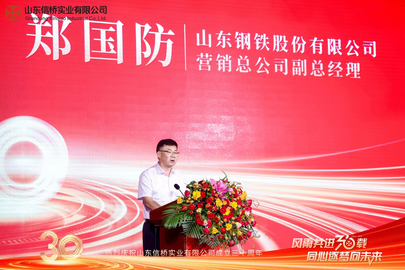 鄭總首先對信橋30周年慶典表示祝賀,并強調信橋公司在耐低溫和低合金型鋼以及角鋼等領(lǐng)域表現突出,為國內外重點(diǎn)工程、重要客戶(hù)提供了滿(mǎn)意的產(chǎn)品和服務(wù),為塑造山鋼品牌做出巨大貢獻。最后對雙方合作做出美好展望。